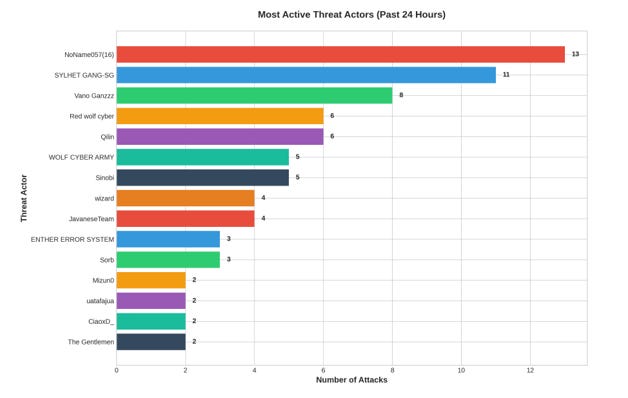 · Most Active Threat Actor: NoName057(16) (13 attacks)
